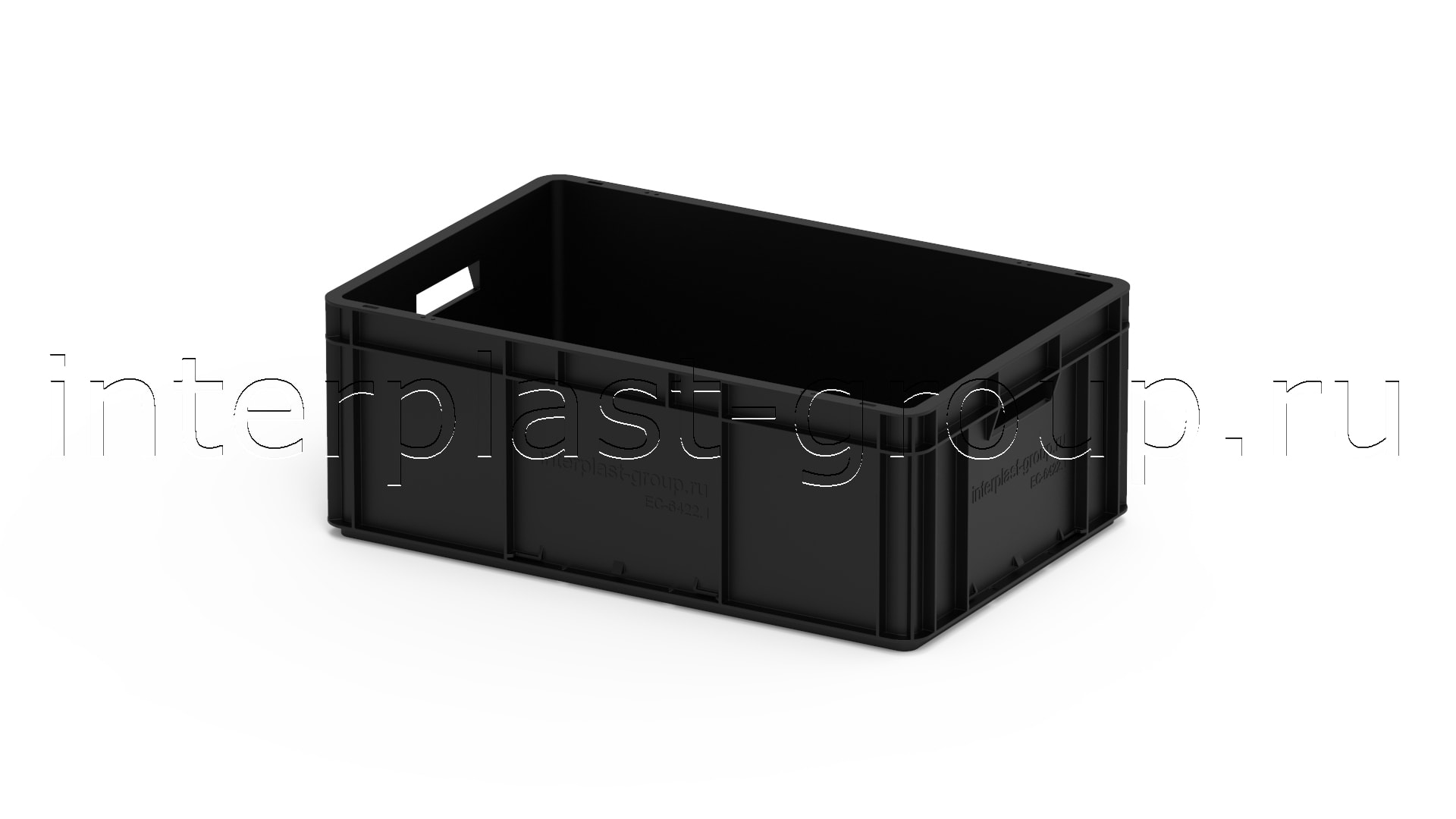 Евроконтейнер открытые ручки/сплошное дно (черный), 600x400x220 мм