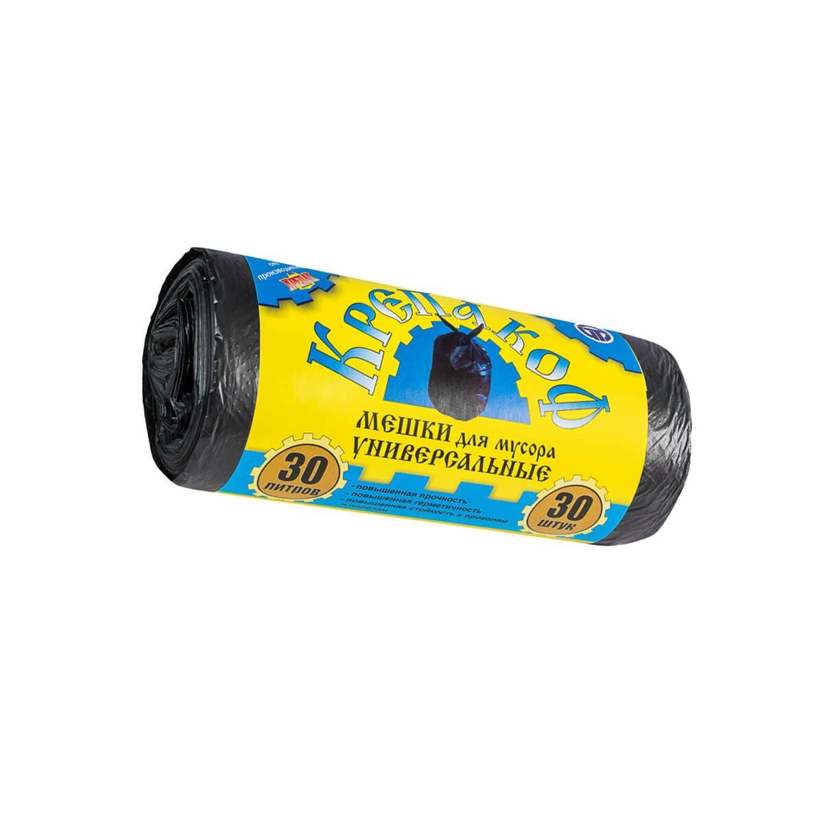 Мешки для мусора 30 л, с ушками, черные, в рулоне 30 шт., ПНД, 8 мкм, 580х460 мм, Крепакоф, 4607075710238