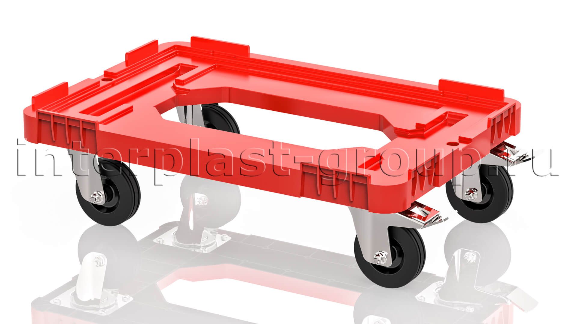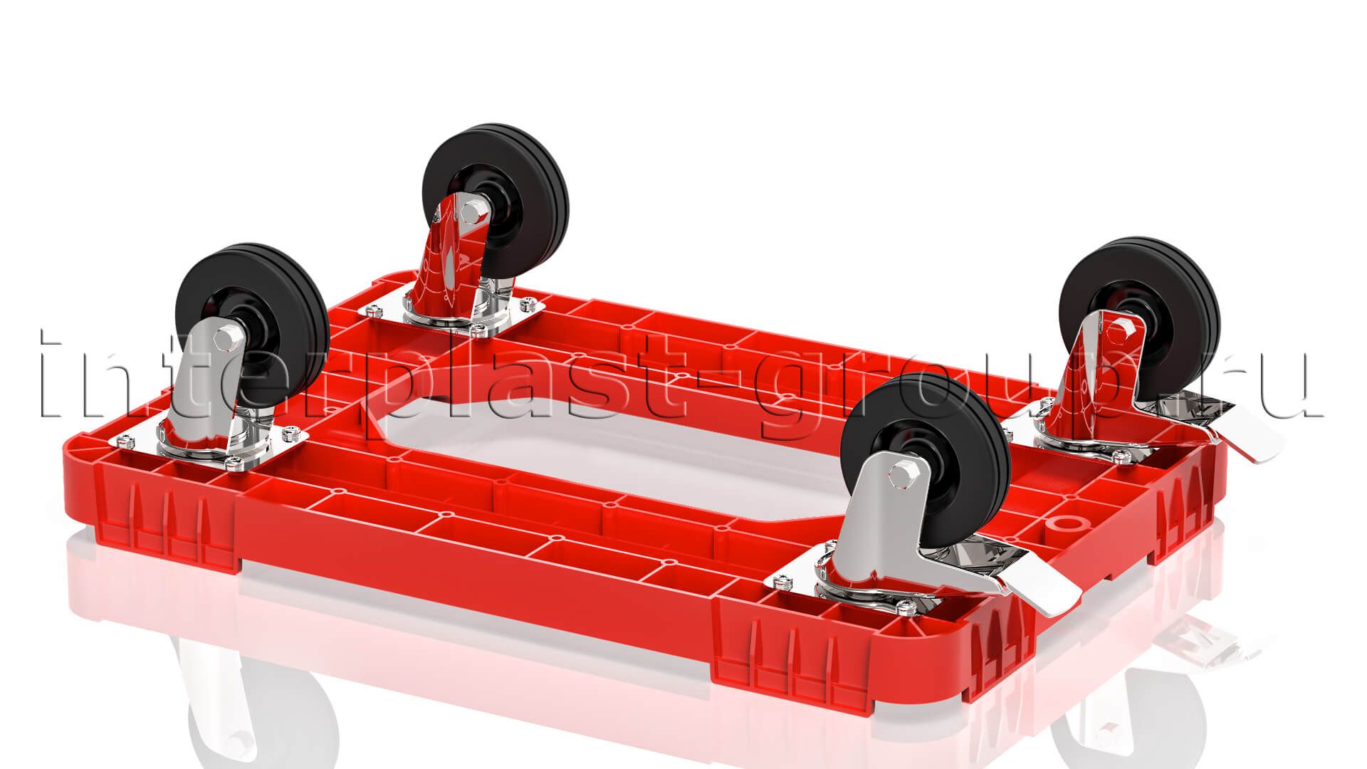 Тележка пластиковая с отверстием 2 колеса с тормозом красная в Химкам